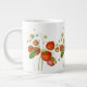 I have grabbed this mug twice now to give water or tea to a thirsty person. Holds a huge amount of refreshment. And as for the vintage Strawberries, they printed perfectly. It is just a great summer Mug! You or a person gifted with it will love it! The printing is bright and the red is exactly as the image I put on it. It is a happy cheerful mug for hot days, to fill with yogurt or ice cream or a huge amount of thirst quencing liquid!