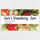 Vintage strawberry Jam - personalised sticker /product label - graphic illustration featuring some ripe and unripe strawberries with green leaves . It has nice early summer feel . Personalise this item now with your own food 's brand details .
