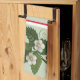 Decorate your kitchen for the summer season with this pretty sage green kitchen towel. This towel features an illustration of a vintage strawberry plant, with pretty white flowers, green leaves, and red strawberries.