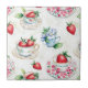 A charming vintage-style pattern featuring ripe strawberries nestled in delicate teacups, surrounded by blooming flowers. Set against a soft, white, nostalgic background, this ceramic tile captures the essence of cottagecore and English garden elegance. Perfect for spring and summer themes, afternoon tea lovers, or floral vintage aesthetics.