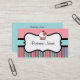Pink, black and blue stripes decorate this cupcake business card. Customise the information on this business card to suit your needs, add or delete information, change the font style, font size, etc...The design is from original art. Use this stylish business card for a spa, salon, small business, home decor, event planner, bakery, cake designer, gourmet food, chocolates, child care, preschool, daycare, candy, ice cream, etc...