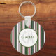 Vintage Stripes Elegant Green White Monogram Key Ring
