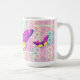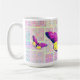 This original designed mug cup features a vintage colourful patchwork pattern that I reworked in pink tones for the background. I placed vintage illustrated butterflies around the cup, which I recreated into pink and yellow tones, as well.