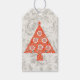 My original artwork is featured on this fun Christmas present tag, consisting of my original design, reworking a vintage textile and shaped into a retro style Christmas tree in dominant red and grey colours. Then I placed it on another vintage textile background in a grey colour tone for a unique one-of-a-kind design. The back of the tag is in a complementary light grey tone for your writing ease and pleasure. This set of 10 gift tags is printed on heavy-weight paper and each tag is 3.5 inches by 2 inches. The tag has a grey colour twine with it but you may change that colour as you please. This fun tag will make your gifts stand out.