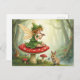 Woodland creatures gather around a fairytale flautist as she sits on a toadstool and plays a melody, in this vintage style digital watercolor illustration by artist Jayne Wilson.