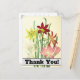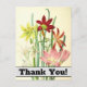 This floral themed postcard design features a vintage style depiction of flowers. The back features an editable thank you message. A postcard like this might be sent to show thanks to somebody who has attended an event, given a gift, offered support, or done some other special deed.