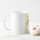 A vintage style merry christmas scene with a tree a snowman and a reindeer. This design looks really effective on these Mug