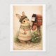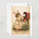 This is an AI-generated image of a rabbit in a sweater and cap mailing a postcard.