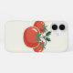 Retro illustration of stylized tomatoes in a muted red and green palette.