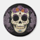 Purple vintage roses surround this beautiful Day of the Dead sugar skull.