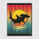 Vintage Sunset Hammerhead Shark in Wave Ocean Scenery.