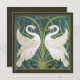 This lovely invitation features a reproduction of a section of wallpaper by Walter Crane of the English Arts and Craft fine art movement (c 1900). The design depicts 2 white Swans amid pale green rushes on a muted blue background. The image is repeated opaquely on the reverse, with a calligraphy template for all the event details.