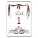 Embrace a vintage aesthetic for your wedding with these exquisite table number cards, featuring a sweet illustration of swans and a decorative ribbon in a rich, deep red hue. The clean white background ensures the charming details of the swans, heart, and greenery stand out, creating an elegant and inviting atmosphere. These cards are designed to seamlessly integrate into your reception's ambiance, providing clear table identification while adding a touch of artistic flair. Delight your guests with these beautifully crafted table numbers.
