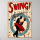 • This eye-catching vintage-inspired poster captures the vibrant energy of swing dancing, featuring a stylish couple mid-dance surrounded by musical notes and hearts. Perfect for music and dance enthusiasts, this design brings the joy and rhythm of swing music to life. Ideal for dance studios, event promotions, or vintage décor.