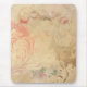 Vintage sculpted scrollwork on a distressed linen background with rose border embellishment.