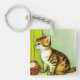 Keychain featuring a sassy tabby cat! This pretty tabby poses next to a basket and flowers. A perfect gift for cat lovers and Victorian art enthusiasts!