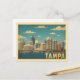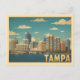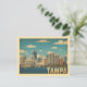 A stunning vintage-style postcard showcasing the modern Tampa skyline rising above the water. The image features the city's downtown buildings and a bridge, all set under a bright blue sky with stylised clouds. The classic, faded colours and retro filter give this image an authentic vintage travel poster feel, evoking the charm of the Sunshine State. This card is perfect for sending a thoughtful message, commemorating a trip to the Florida coast, or framing as a small piece of city art. A great design for anyone who loves Florida, the Gulf Coast, or classic cityscape designs.
