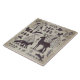 In vintage colours of tan and blue grey, a stylised woodland forest is filled with trees, leaves and animals - a deer, fox, bunny rabbits, squirrels and birds. The background has a textured paper look. A nice home decor accent for kitchen or bathroom; use as a trivet or a decorative piece. A great hostess gift! Whimsical artwork & design by Tuzi Williams.