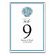 Vintage Teal Blue Single Seashell Wedding Table Number