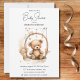 Step right into a world where whimsy meets timeless charm with this enchanting baby shower invitation featuring a vintage design of a teddy bear on a swing. Whether you're celebrating the imminent arrival of a little prince or princess, or opting to keep the gender a delightful surprise, our gender-neutral colour palette ensures every detail is as magical as it is inviting.