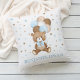 This adorable teddy bear themed pillow is sure to put a smile on everyone's face! The design features a cute teddy bear with soft pastel blue, brown, beige and ivory balloons.