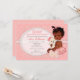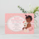 Vintage Retro Baby Shower Invitation Girls Pearls and Lace Teddy Bear Suitcase pink damask #223 (DARK skin-tone Brown Hair Brown Eyes)