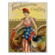 Original vintage Thanksgiving greeting illustration with a woman and turkeys.