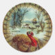 Vintage Thanksgiving image of a turkey and in the tail feathers is a image of the pilgrims landing at Plymouth Rock.