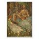 A vintage book illustration called "Three Maidens" by Florence Susan Harrison from the 1914 book titled "Early Poems of William Harris." It depicts a golden knight on his horse in the forest with three fairy maidens dancing around him. The artist, Florence Susan Harrison (1877-1955) was born on board the Windsor Castle, a ship bound from London to Brisbane, Australia. Her father, Norwood Harrison, was a master mariner and ship’s captain, and his family spent much time of their time at sea with him. In between voyages, Florence attended a school run by a great-aunt in Folkestone, England. As an adult, Florence lived in England and for some time in Belgium. She was an Art Nouveau and Pre-Raphaelite illustrator of poetry and children’s books including some books of her own poetry. Following Florence’s death, her artwork was often mistakenly attributed to Emma Florence Harrison, a Victorian-era artist who exhibited at the Royal Academy in the 19th century. To this day, Florence Susan Harrison’s artwork can be found on many Internet art websites incorrectly attributed to Emma Florence Harrison. This card is blank inside for your own message.