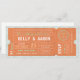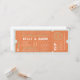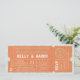 Bold fonts decorate this vintage inspired ticket. Perfect for any event hosted in a historic union station or theatre. Shown in shades of Peach, Mint and Coral (a Pink-Orange hue). Add in your names, venue information and wedding date to announce your big day in style! To further customise (changing fonts and/or colours) click the orange 'customise it' button, above.
