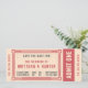 Vintage inspired ticket as wedding save the date or wedding invitation. red and Beige. more paper options available.