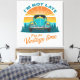 Vintage Time Ride T-Shirt. A retro-style illustration featuring a classic turquoise Beetle car in front of a vibrant sunset, surrounded by pine trees. The text humorously reads “I’m not late, I’m on vintage time,” highlighting a nostalgic and playful vibe.