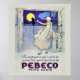 A beautifully illustrated advertisement for Pebeco Toothpaste. In shades of blue, featuring a lovely lady in a gorgeous bathroom looking at a black cat against a yellow full moon.