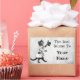 A bookplate sticker with custom text in hip, retro letters, and a black and white drawing of a cat in a top coat and tails, tipping his top hat on a grey grunge faux canvas background.