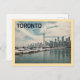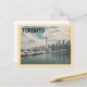 A stunning vintage-style postcard showcasing the iconic Toronto skyline, including the famous CN Tower, viewed from the scenic harbour filled with boats and yachts. The classic, faded colours and retro filter give this image an authentic vintage travel poster feel, evoking the city's modern architecture and waterfront appeal. This card is perfect for sending a thoughtful message, commemorating a trip to Ontario, or framing as a small piece of city art. A great design for anyone who loves Canada, city views, or waterfront cityscape designs.