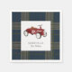 Add a touch of vintage charm to your baby's first birthday bash with these 'Vintage Toy Car Navy Plaid' paper napkins. The centerpiece is a delightful watercolor illustration of a classic red toy car, presented on a clean white square that contrasts beautifully with the deep navy and muted green plaid background. These napkins are perfect for a festive occasion, providing a unique and memorable detail for your celebration. Guests will love the charming design as they enjoy the festivities.