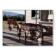 A vintage toy wagon and tractor wait on the front porch of an old white clapboard country house in the mountains. Oh, the stories these venerable, well-loved toys could tell. On the back of the card is a toy tractor.