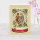 Beautiful vintage traditional image of the Holy Family, Jesus, Mary, and St. Joseph with Christmas floral decor.