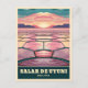 Experience the surreal beauty of Bolivia's Uyuni Salt Flat with this unique retro travel-inspired design. Infused with nostalgic vibes and vintage charm, this piece captures the endless expanse of hexagonal salt formations in a retro minimalist style that combines mid-century aesthetics with a modern twist.