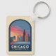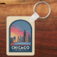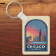Vintage Travel Chicago Sunset Skyline Cityscape Key Ring