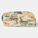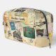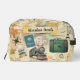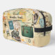 This Dopp Kit features a vintage style collage of travel elements. This would make a good gift for someone who loves travelling or as a bon voyage gift. The text on the Dopp Kit is customisable with your own text or can be left as is.