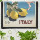 Kitchen towel with the map of Italy with yellow lemons. Customisable. This is an old poster with slight damage.
