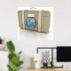 Decorate your space with this stunning poster featuring the unique graphic of a vintage travel suitcase secured with straps and adorned with a detailed world map clock face. This print is perfect for adding a touch of sophisticated, retro wanderlust to any room, including a home office, travel agency, den, or bedroom. The design beautifully merges classic luggage aesthetics with a global timepiece, symbolizing adventure and time well spent. Ideal for travel enthusiasts, geography lovers, or collectors of vintage-style art.