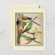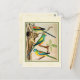 Postcard with a digitally cleaned and enhanced vintage image of a Turquoisine Parakeet and a Many-Coloured Parakeet, with a light yellow parchment border and back. Colourful natural history illustration by W. Rutledge from The Illustrated Guide of Canaries and Other Cage-Birds, 1878.