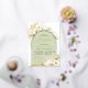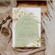 Tropical chic baptism or christening invitations in an alluring neutral colour palette feature a rose gold foil arch bearing your church ceremony and celebration or party details, accented with pale green watercolor palm fronds, beachy island foliage, white orchids, boho dried botanicals and pampas grass.