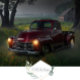 Vintage Truck in Meadows and Barn Découpage Paper: Rustic charm comes alive with an old-fashioned truck, rolling meadows, and a classic red barn—perfect for farmhouse crafts.