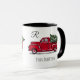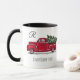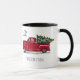 Celebrate the Christmas season with this mug featuring a cute vintage red pickup truck hauling a green snow covered Christmas tree. Add a custom initial in black script and your name in black hand written font. Makes a great personalised Christmas gift for family, friends and co-workers. Designed by © Tim Coffey.
