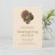 Invite guests to a festive Thanksgiving potluck dinner with this autumnal, off-white invitation with an illustrated male tom turkey in full colour and easy to customise text. A handy custom QR code on the back sends guests to a link of your choice to collect RSVPs and potluck meal contributions. Perfect for a fall got together with friends, adult birthday or even Thanksgiving meal, the easy to edit text gives you many options for personalisation.