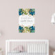 Turquoise - teal and gold shabby-chic flowers bridal shower welcome poster with accents of ivory white.