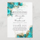 Turquoise - teal and gold shabby-chic watercolor roses wedding program fans with elegant handwriting typography.
